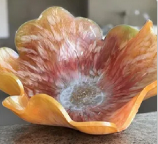 Bring beautiful artistry to your home with our handcrafted 10-inch resin flower bowls. Each bowl is individually poured to resemble a blooming flower, with stunning petal textures, soft color transitions, and a glossy, eye-catching finish. Perfect as a statement centerpiece, fruit bowl, candy dish, entryway catch-all, or décor accent for any room.