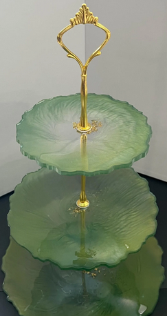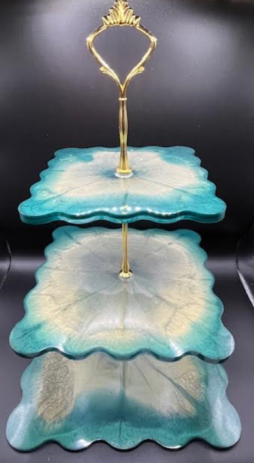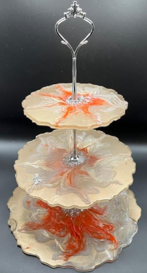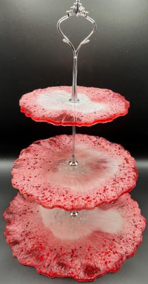 Elevate your home décor or dessert table with our handcrafted 3-tier resin display trays. Each tray is individually poured, creating beautiful one-of-a-kind patterns with shimmering depth and rich color. Perfect for serving wrapped treats, showcasing jewelry, organizing small items, or adding a statement piece to your home.