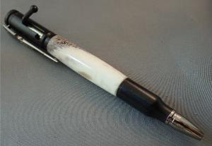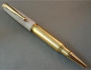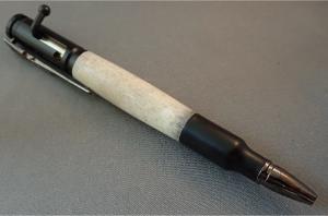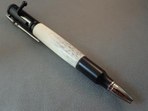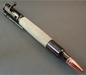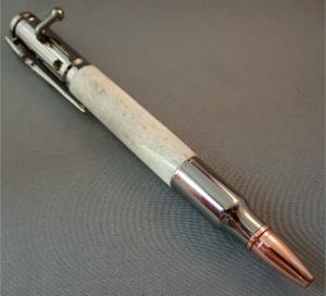 This pen was made from Elk Antler from a hunting ranch in New Mexico. It is styled to look like a Bolt Action in a Chrome and Bright Copper plated. The pocket clip resembles a scoped hunting rifle. – These Pens Use Parker Refills Available Nearly Everywhere – These Pens Come In A Presentaion Gift Box – Ready To Ship – Processing Time 2 to 7 Business Days – Handmade In Washington