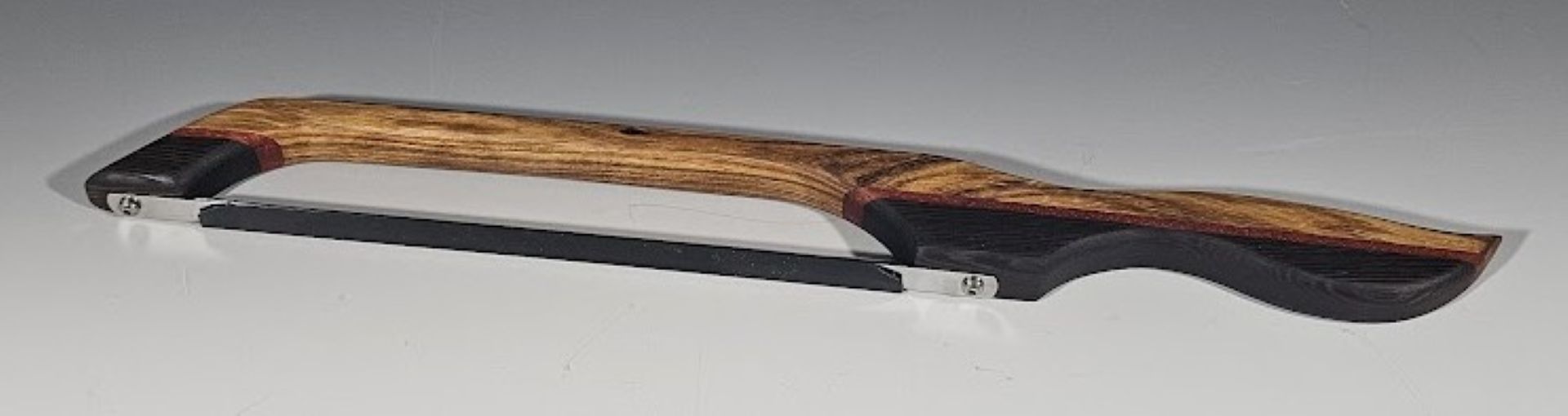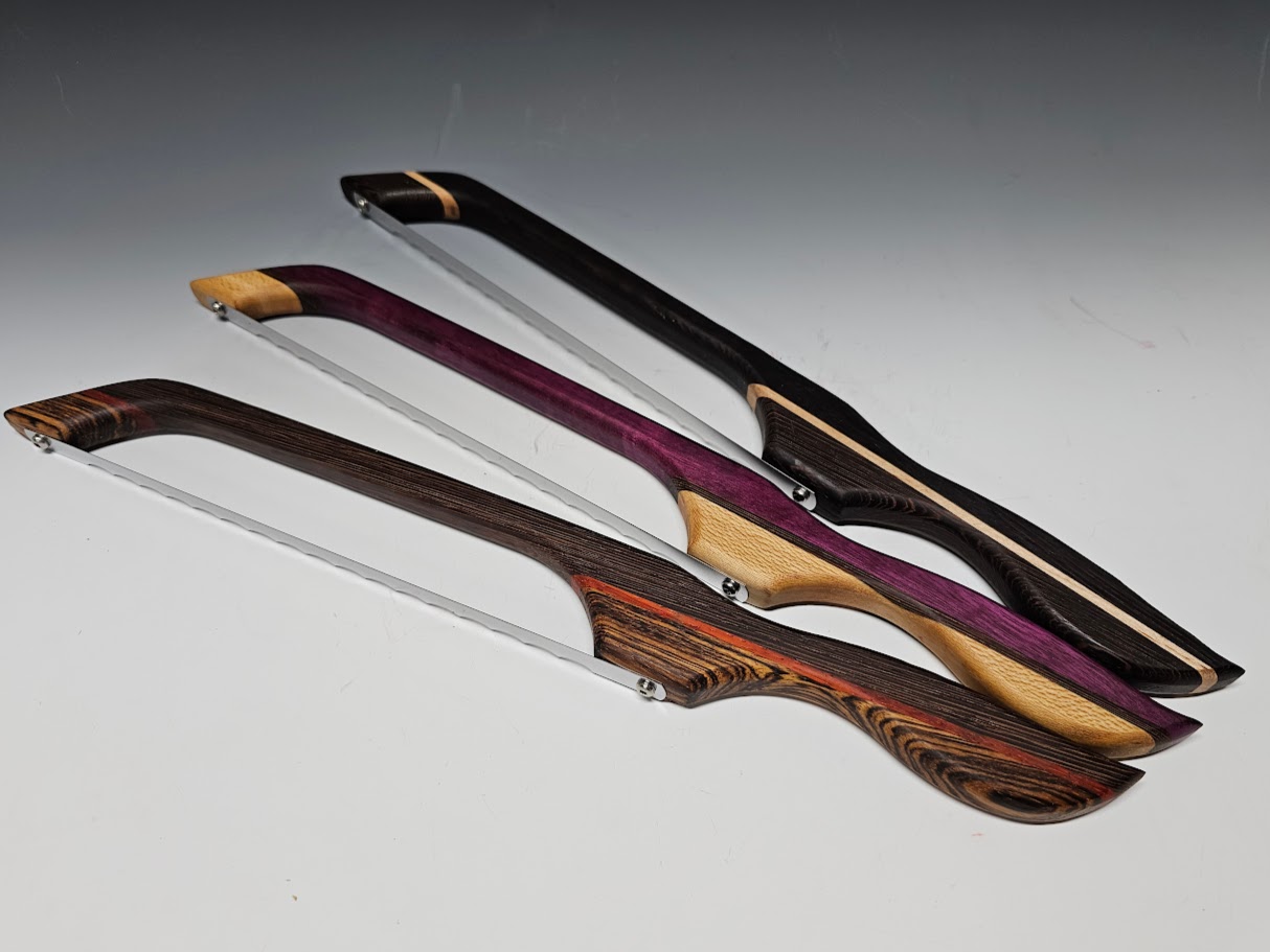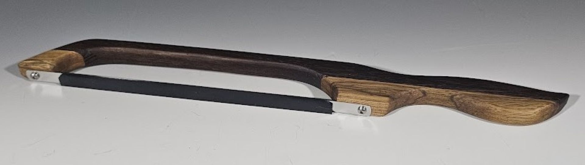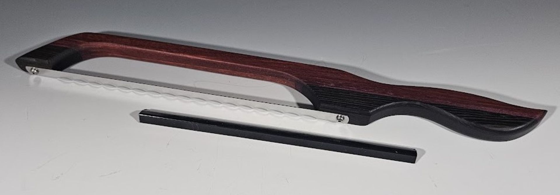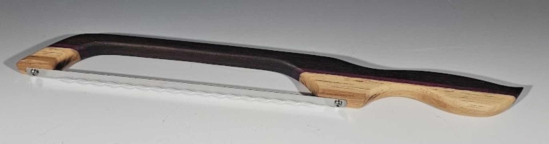 These beautiful three piece bread knives Meaning we use three different woods in each) come in a variety of exotic and local hardwoods (all sustainably harvested)