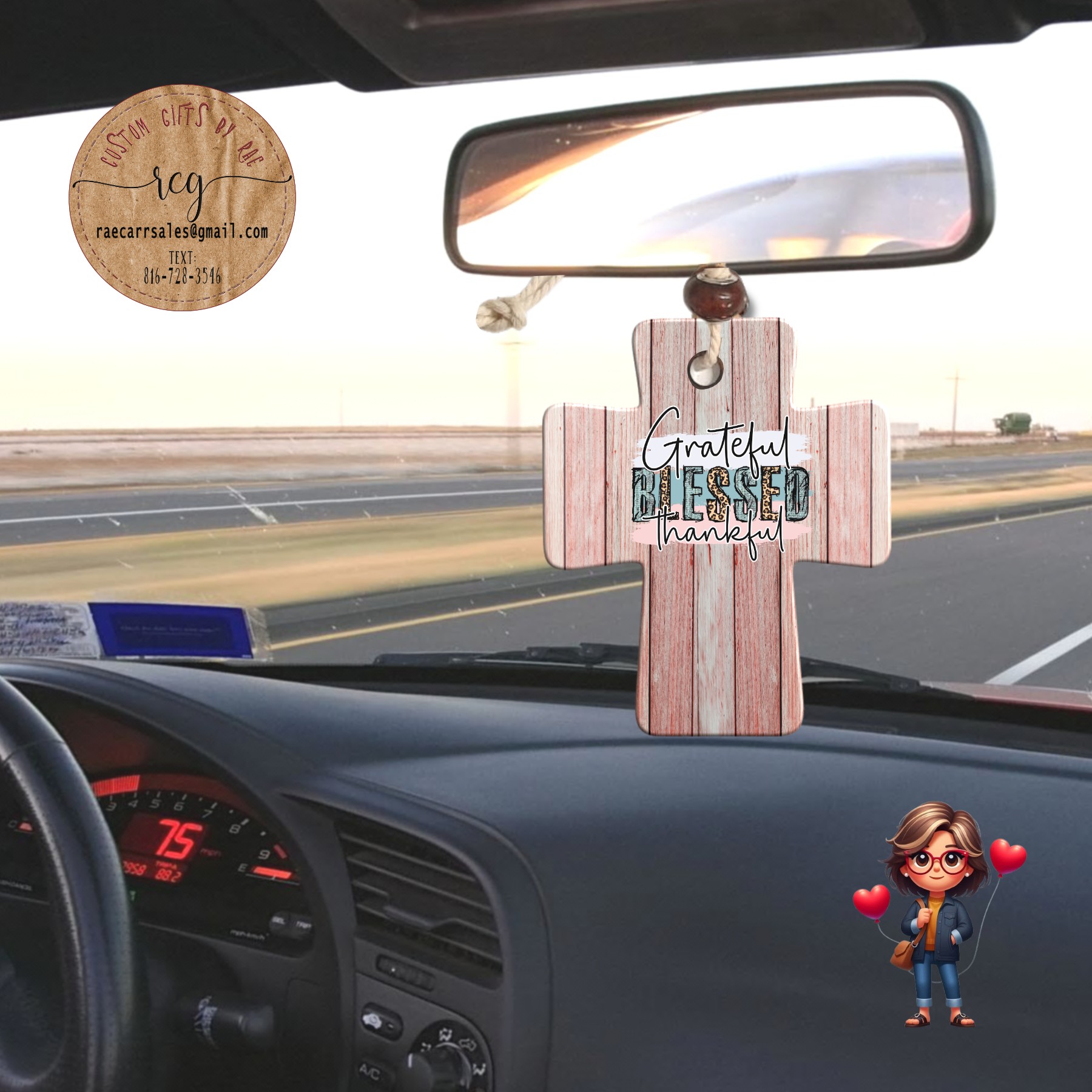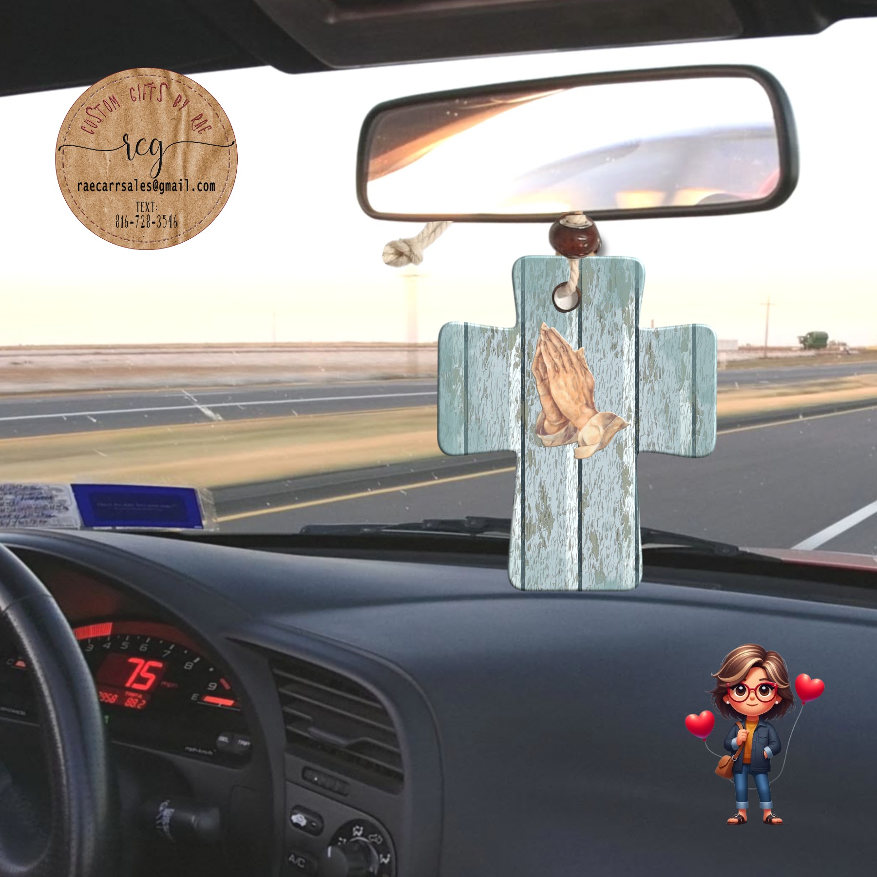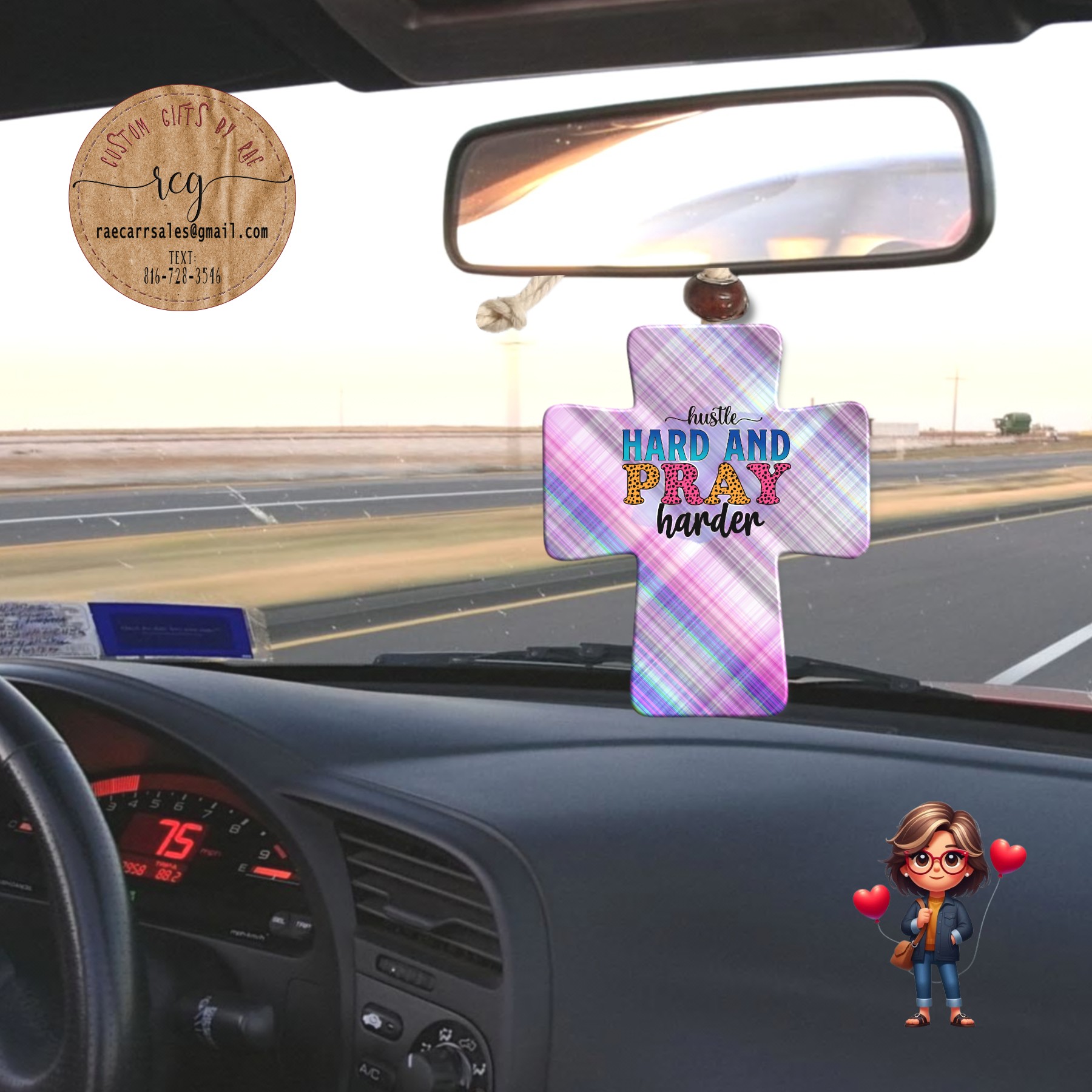 This small cross makes a great bag tag charm or rear view mirror charm. You can order with same design on each side, or plain background opposite of the main design. I have many other designs available. Just fill in your info in the customize box. This cross can be used as a rear view mirror hanger, a wall hanger, on a door knob, tree ornament, or as a purse charm.