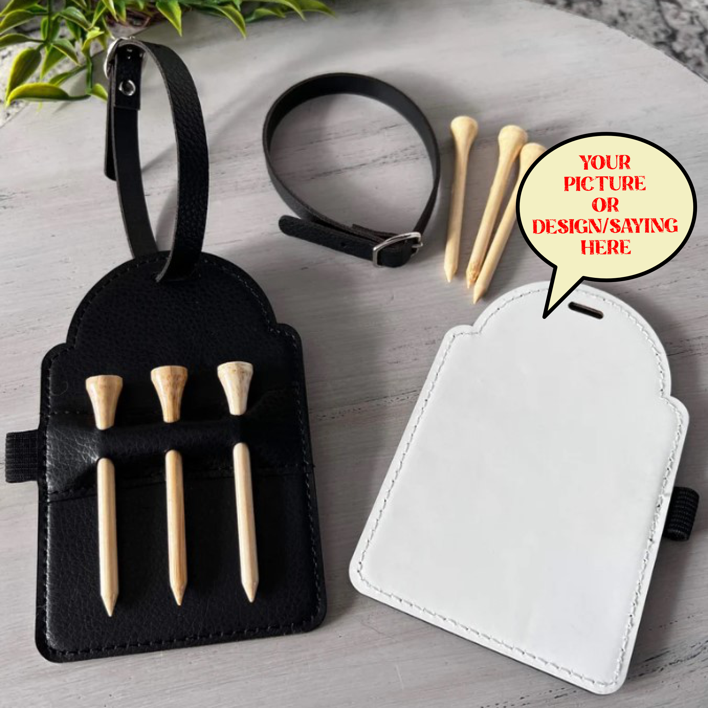 These high-quality PU leather Golf Bag Tags are the perfect item for personalized gifts. Each with belt clip, 3 plastic tees and pencils. Printed with full-color sublimation. Chose one of the designs pictured, however you are not limited to them. I can create pretty much anything you need. Message me with your vision and I will send proofs. Each design is printed using sublimation process, so it will not fade, peel or rub off.