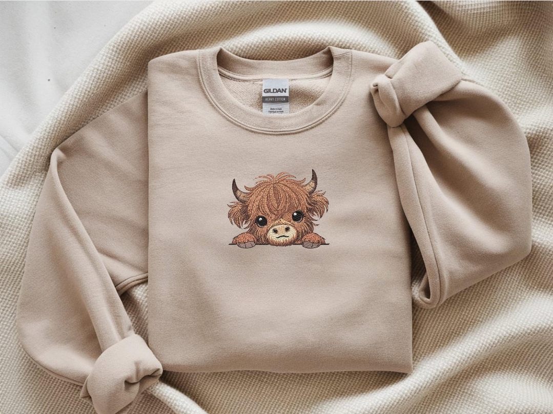 Highland Cow Embroidery Sweatshirt