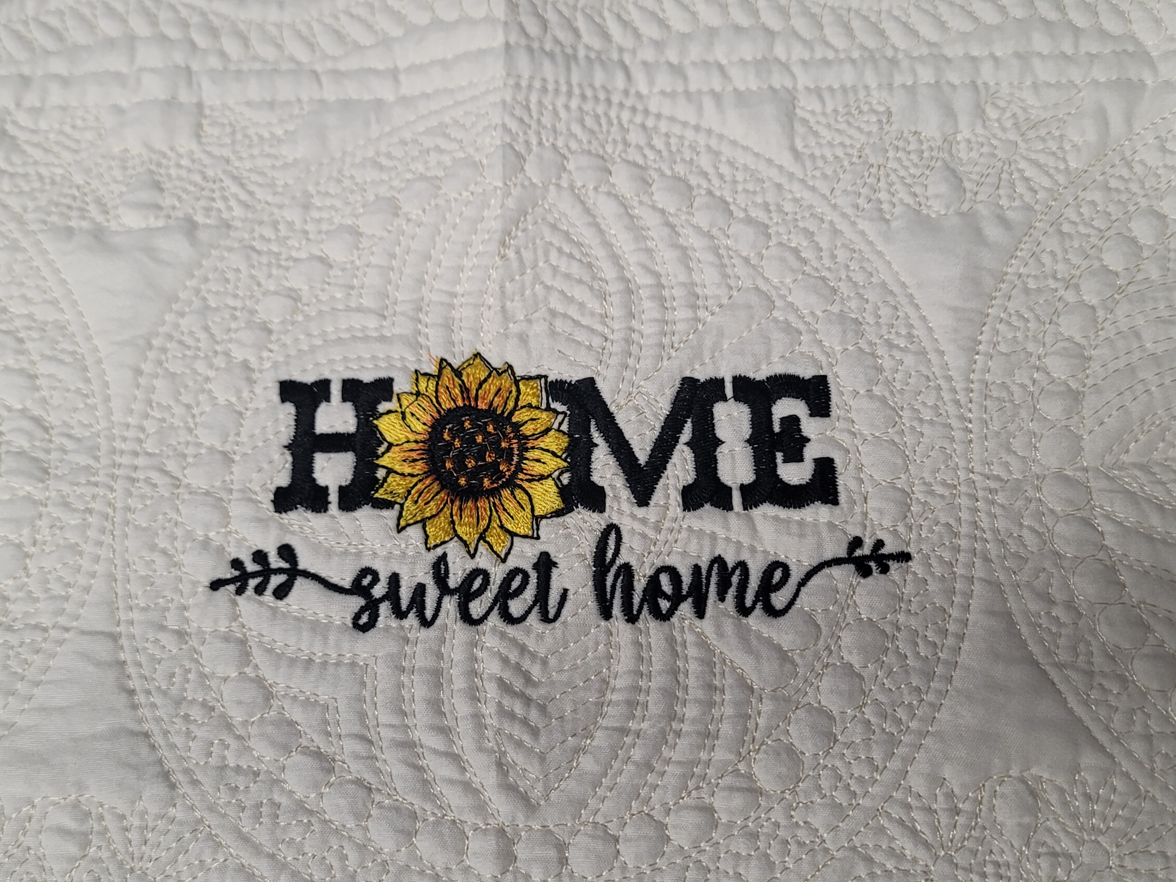 Bring cozy charm to your home with this beautifully crafted table runner, featuring the word HOME in bold letters with a sunflower twist. Highland cows adorn each side for a rustic feel on this soft cream table runner.