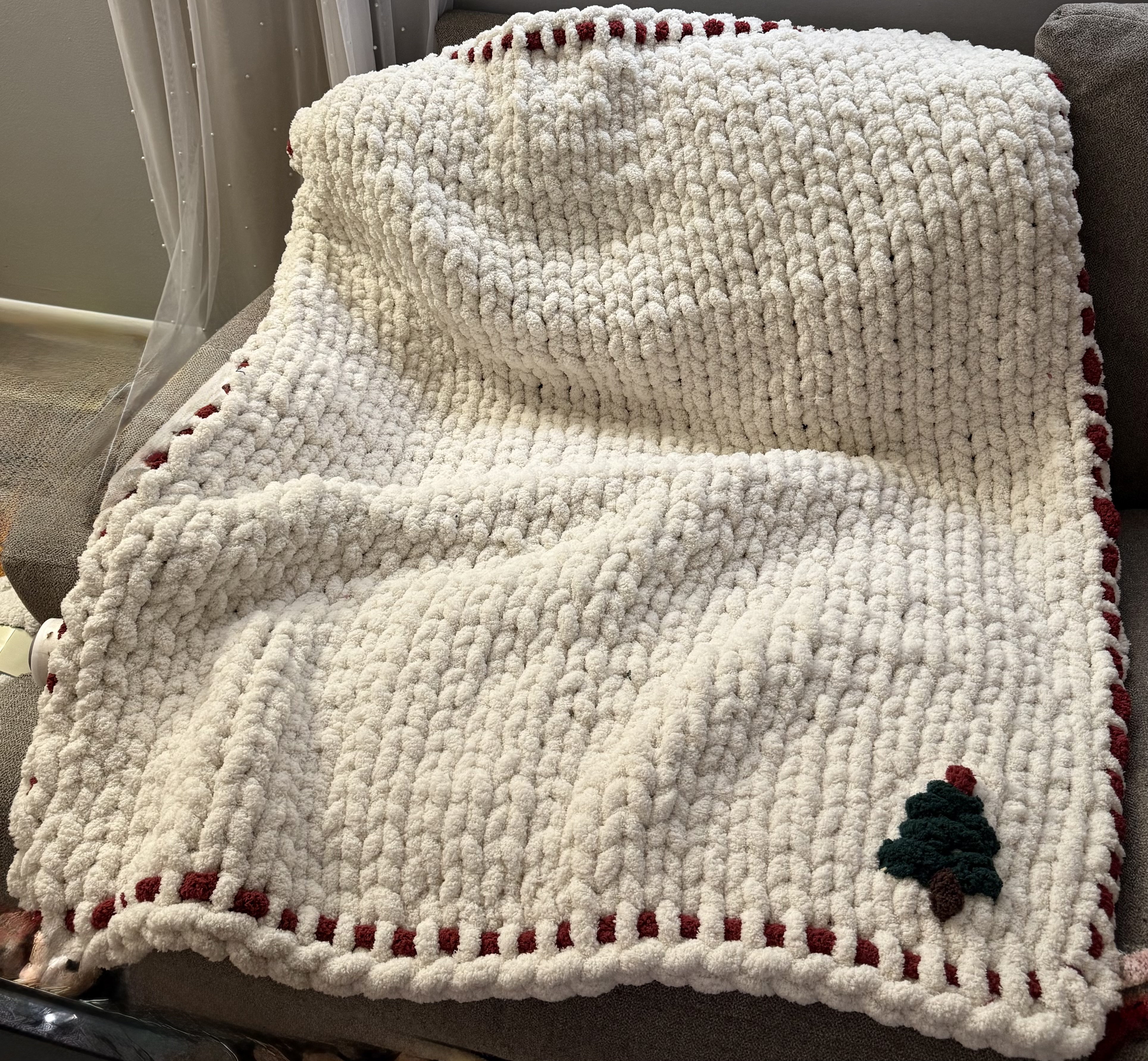 50×60 holiday themed couch throw made with chenille yarn. Soft and cozy, perfect gift for the holidays!