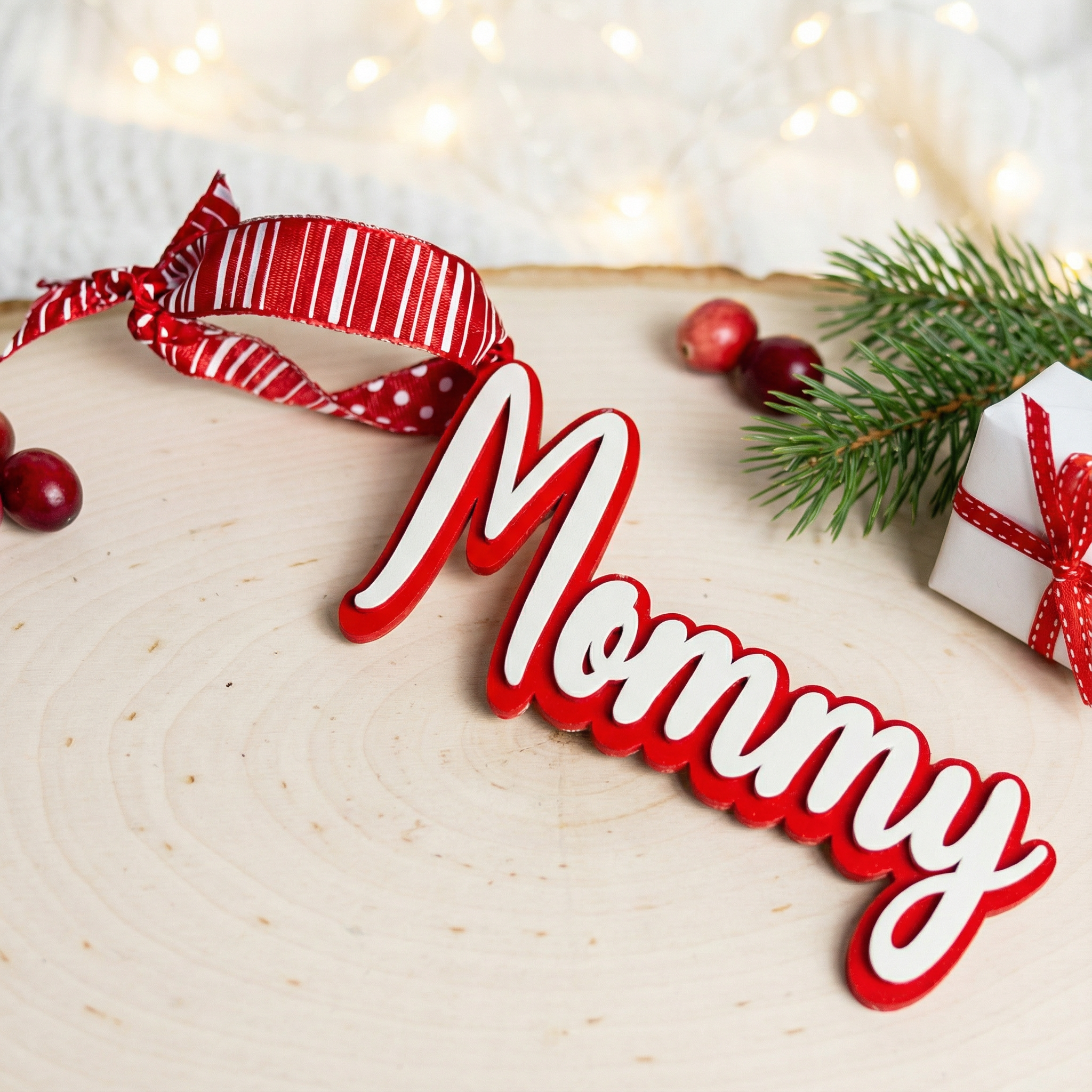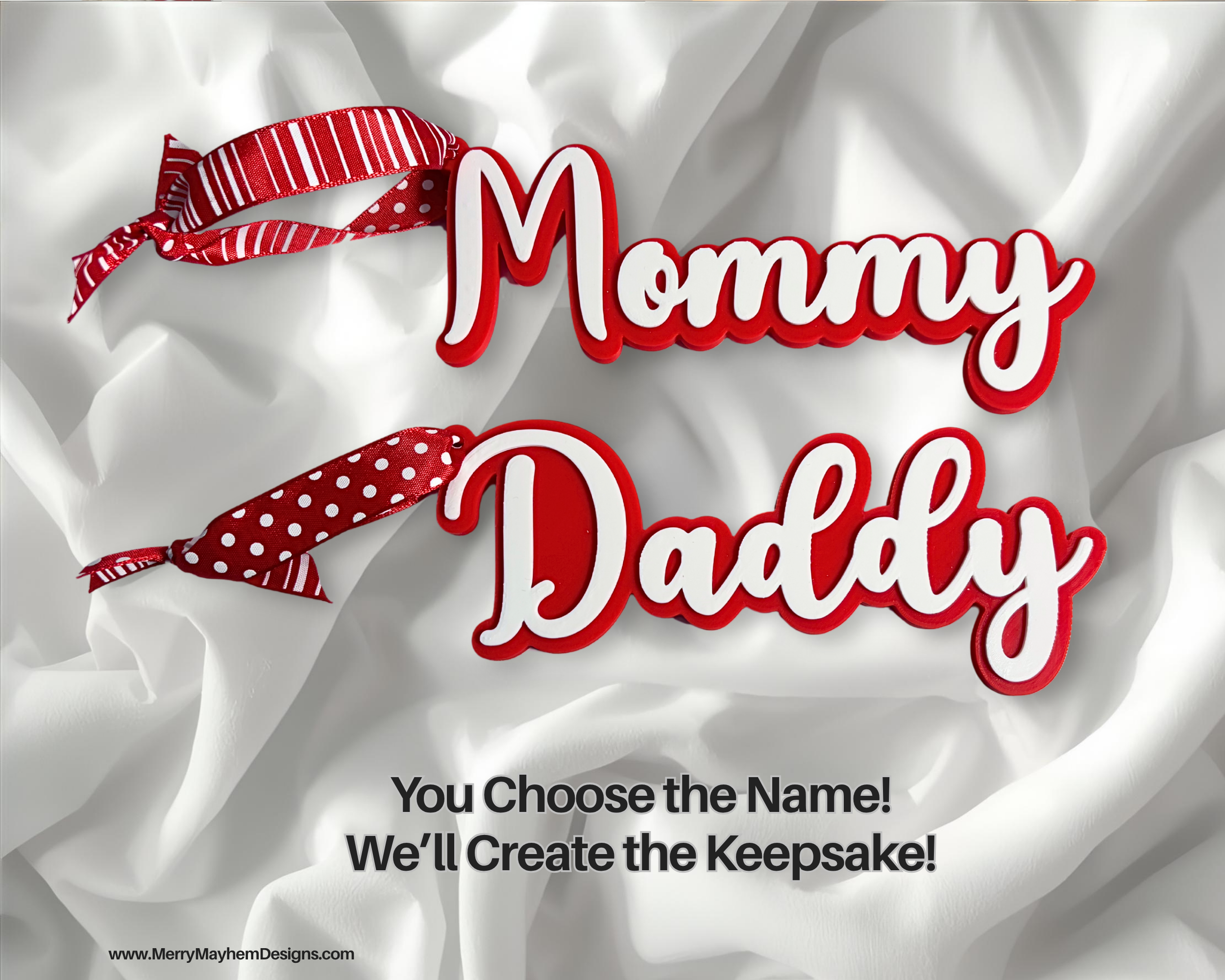 Because if it’s cute… someone will try to steal it. Personalized 3D names for stockings, gifts, ornaments — whatever you want to claim! Each one is 3d printed and hand decorated in a bright and cheerful “classic red & white theme.”