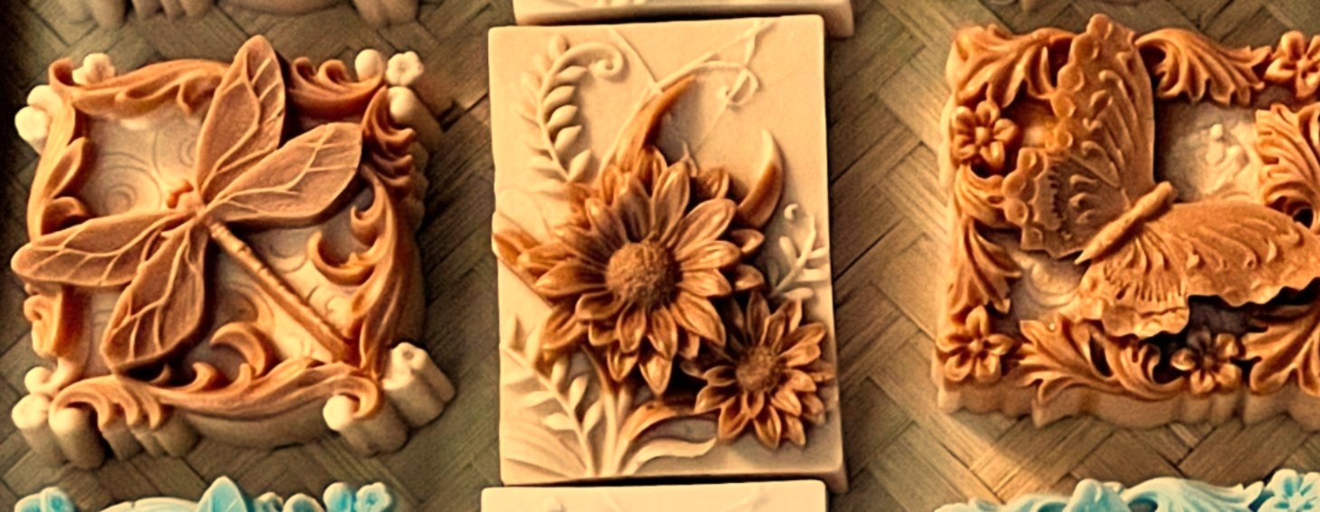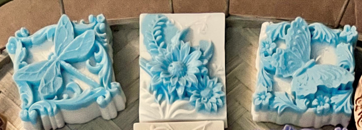 Each set includes one each of the beautiful dragonfly, flower, and butterfly soap bar.
