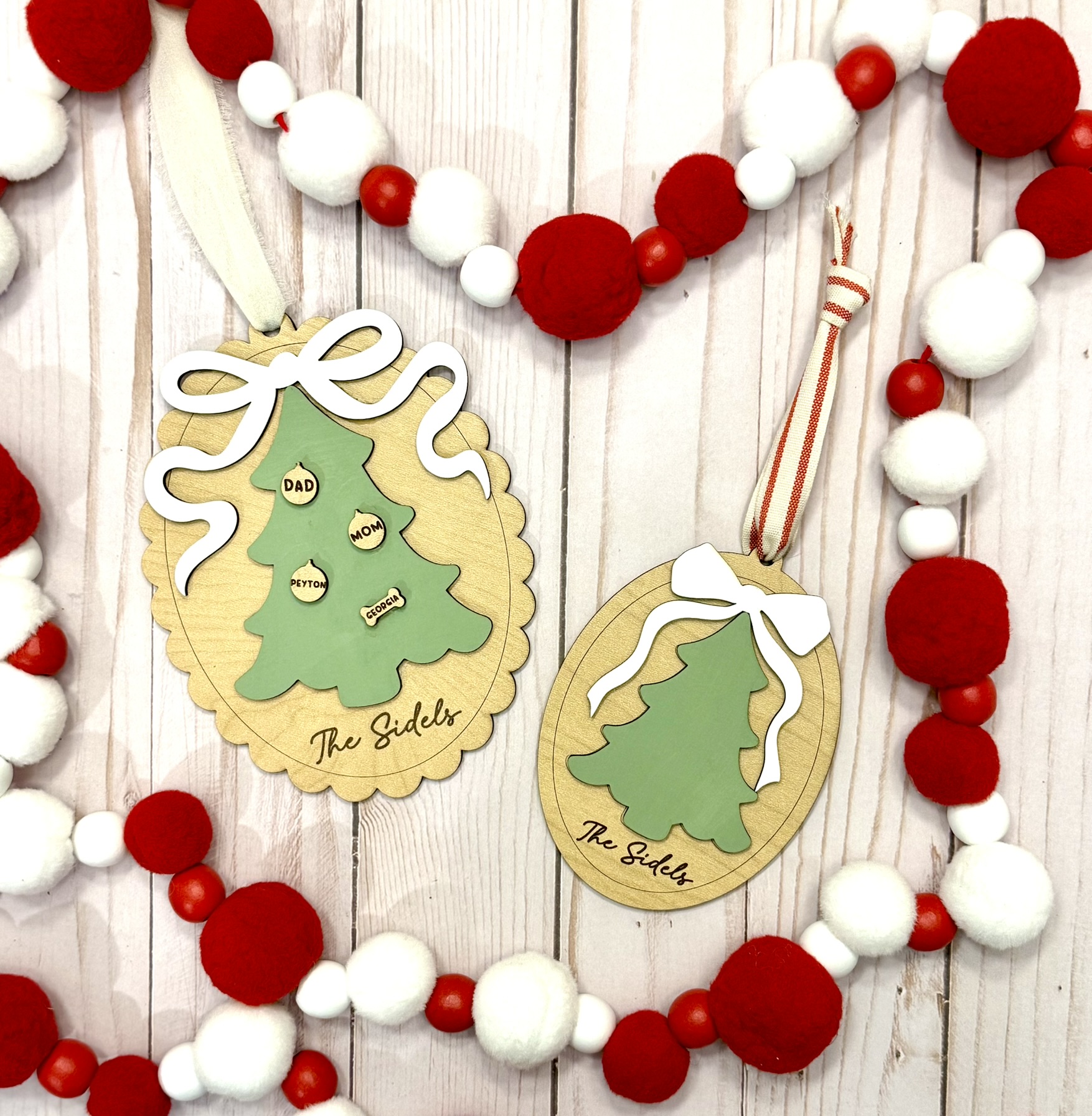 Choose from two shapes—scalloped edge or classic oval—both lightweight, durable, and perfect for hanging on your Christmas tree or gifting to loved ones.