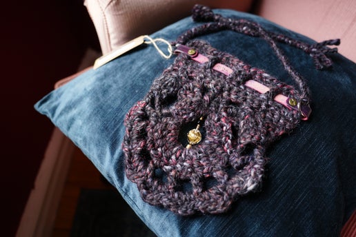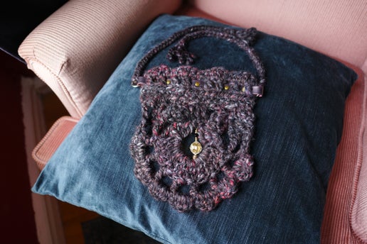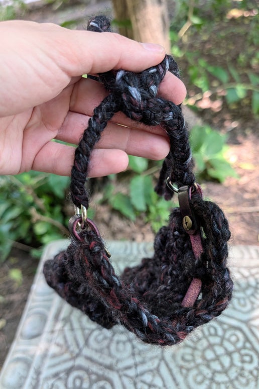 This scarflet is small enough to keep in a bag for “just in case” moments, and easy to put on and take off without having to adjust the other layers you’re wearing or deal with added fabric bulk at the back of your neck. The cozy yet sturdy textures of yarn and real leather, plus the delicate lace design, make each scarflet feel uniquely whimsical and enjoyable to wear.
