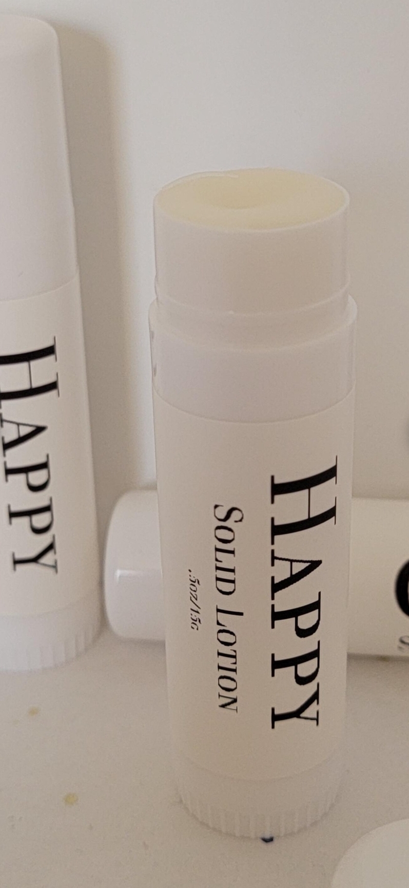 Twist up container with .5oz solid lotion.