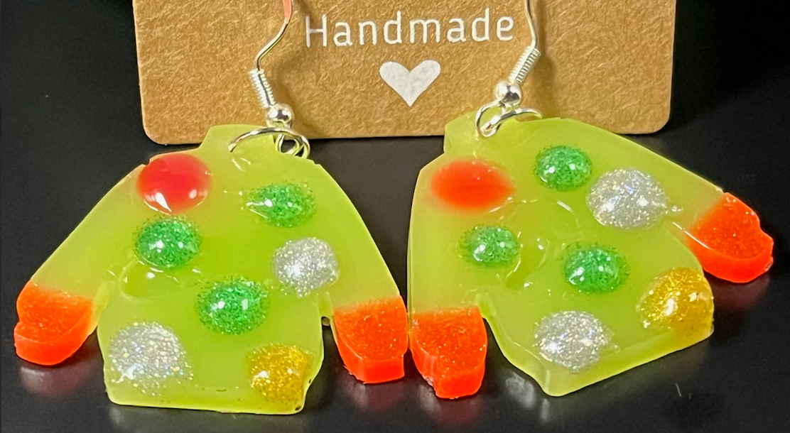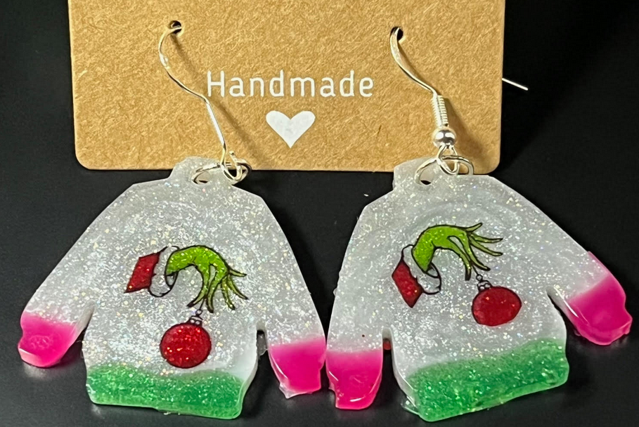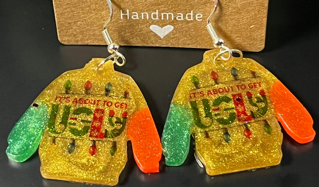 Hand-poured resin ugly sweater earrings
